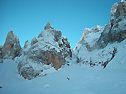 In discesa, porre attenzione ai primi 20/30m, sono ripidi e stretti. Per non rischiare di finire con gli sci su
