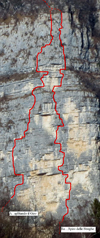 Difficoltà: 6a/A0 (eventualmente A1) - 6a/b obbligatorio