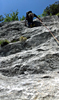 5° tiro. 20 m. Continuare in verticale (muro di alcuni metri) lungo la placca fino alla cengia di sosta.