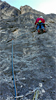 La roccia cambia colore, diventa gialla, gli appigli e gli appoggi sono più netti però, la parete strapiomba...(6b, 6b+)