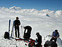 Arrivati alla spalla si devia a sinistra per la vetta. Anche se gli ultimi 50m sono molto ripidi le difficoltà non sono eccessive: la neve portante e il percorso scalinato da precedenti passaggi hanno reso la salita pressoché sicura.