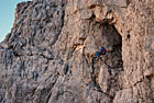 attenzione alle prese mobili fino ad un terrazzino detritico con cordino viola su spuntone (20 m, III