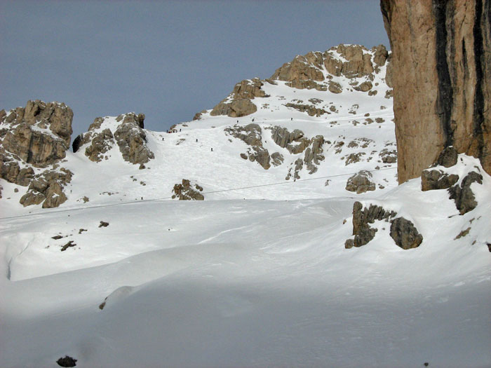 Di fronte al Passo il Mulaz: una gran classica di scialpinismo.